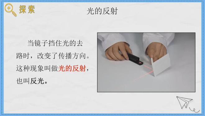 关于光的内容,我们在小学教科版五年级上册的《科学》书中就会学到。像反光镜对应的“光的反射”知识点,还是很重要的一课。