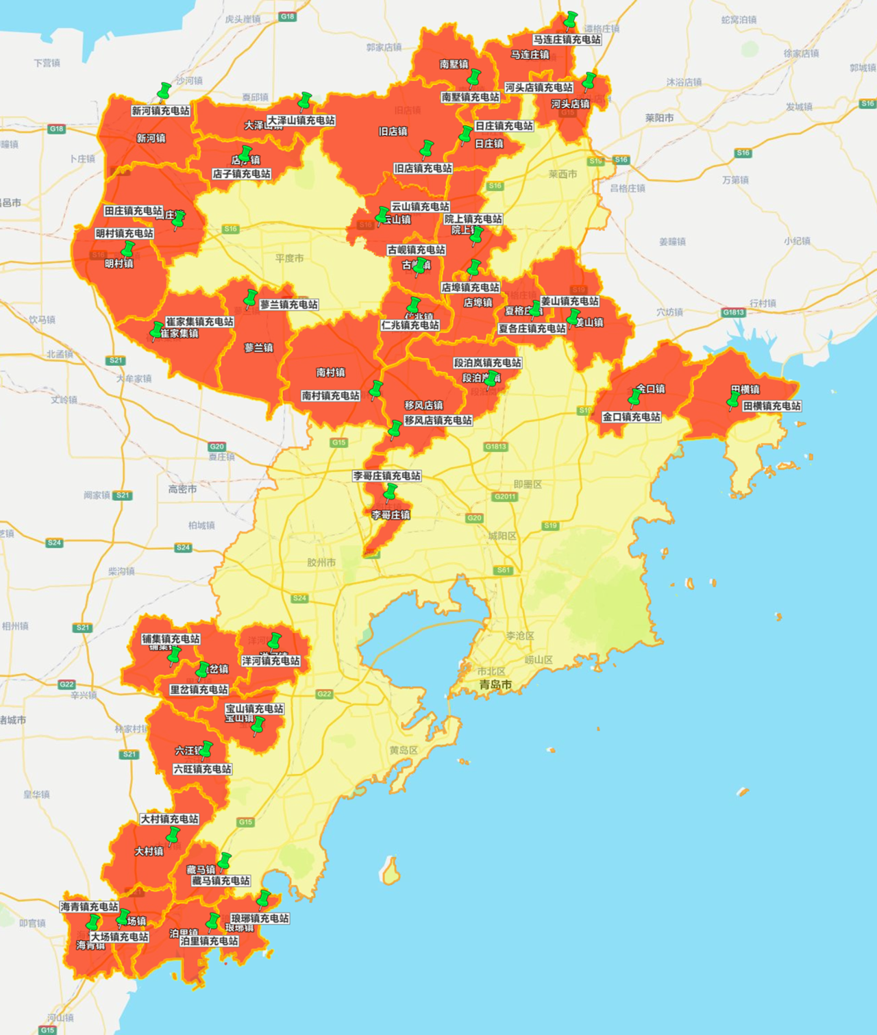 青岛城投充电网科技发展有限公司于12月10日提前20天完成青岛市所有36个乡镇公共充电站全面覆盖工作任务。